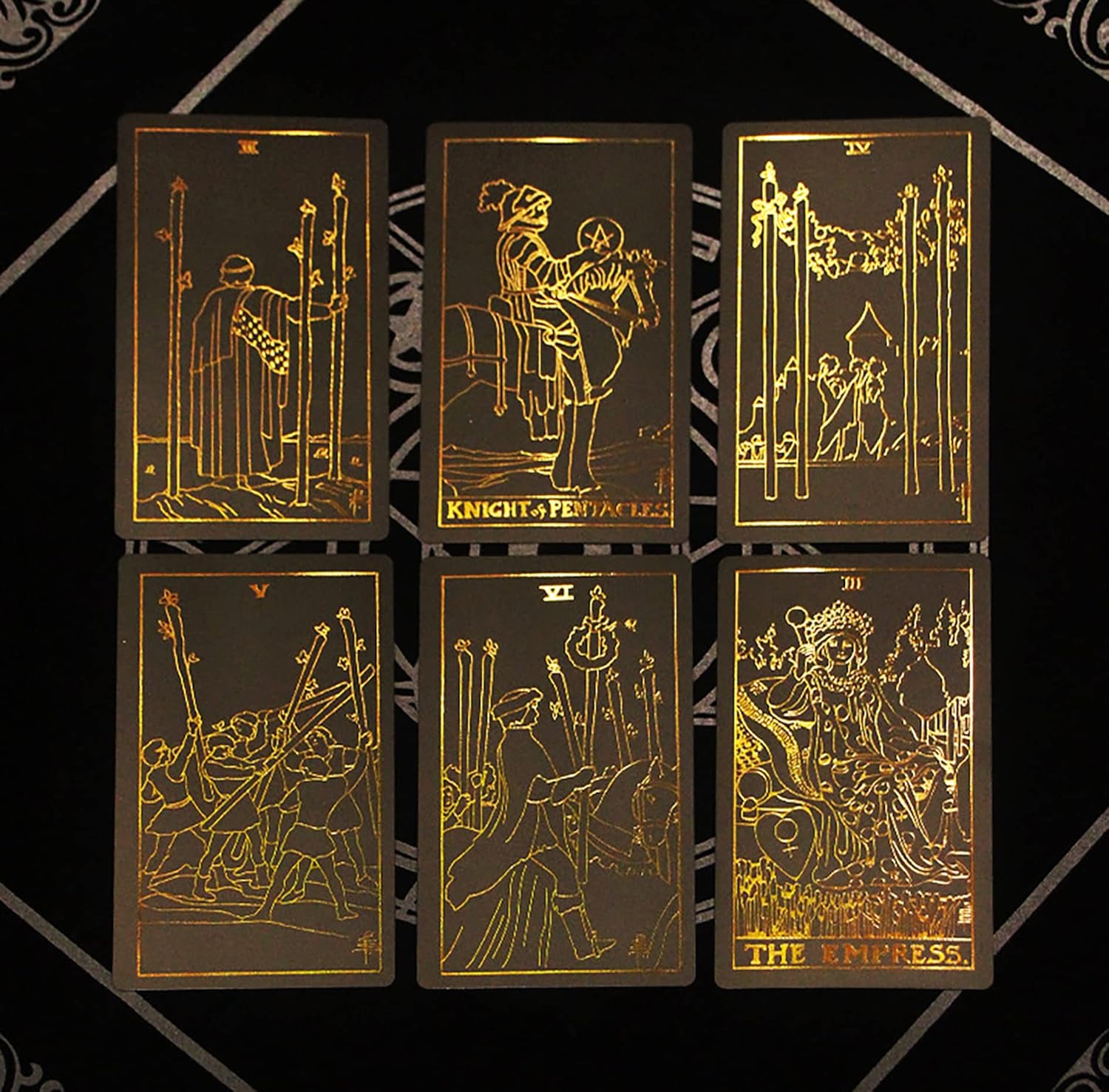 Οι Κάρτες Ταρώ Gold Foil είναι διακοσμημένες με πλούσιες, χρυσές αποχρώσεις, φέρνοντας μια πινελιά πολυτέλειας στην πρακτική της μαντείας σας.