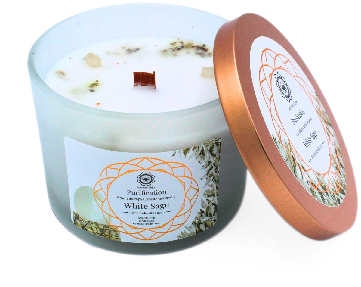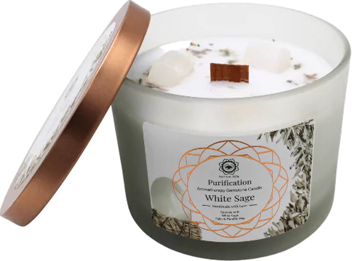 Το Κερί με Πολύτιμους Λίθους Purification White Sage είναι δημιουργημένο με την ενέργεια του λίθου Selenite.