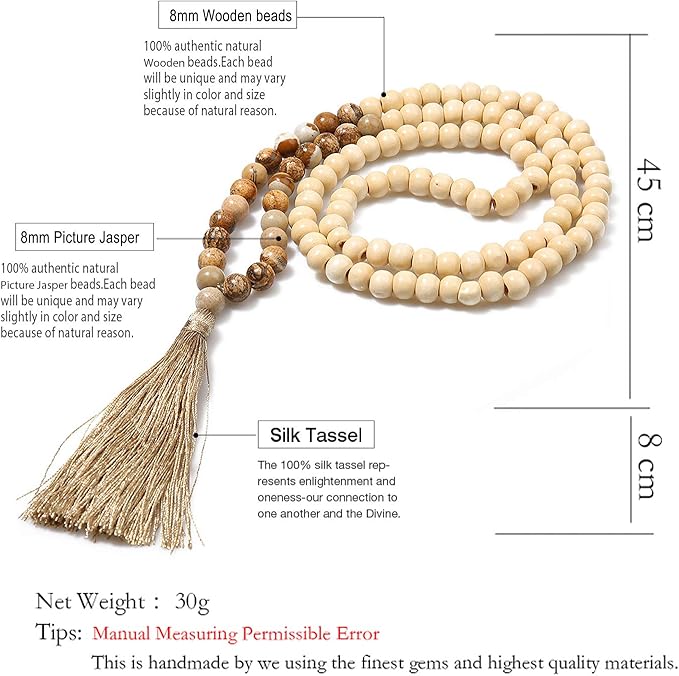 Θιβετιανό Χειροποίητο Mala Διαλογισμού που αποτελείται από Φυσικές Ξύλινες Χάντρες 8mm