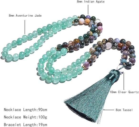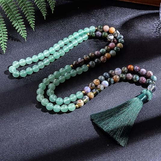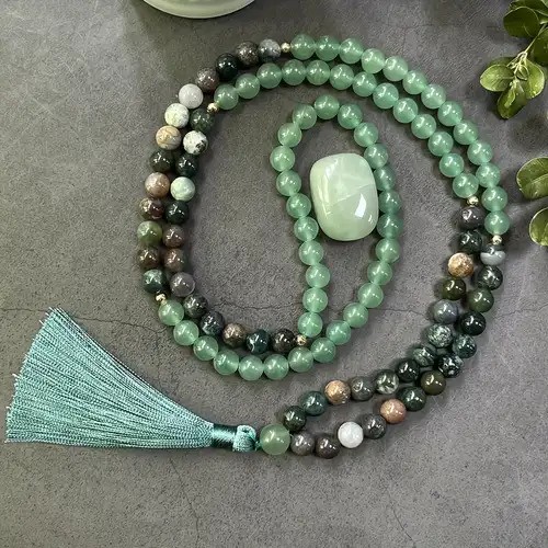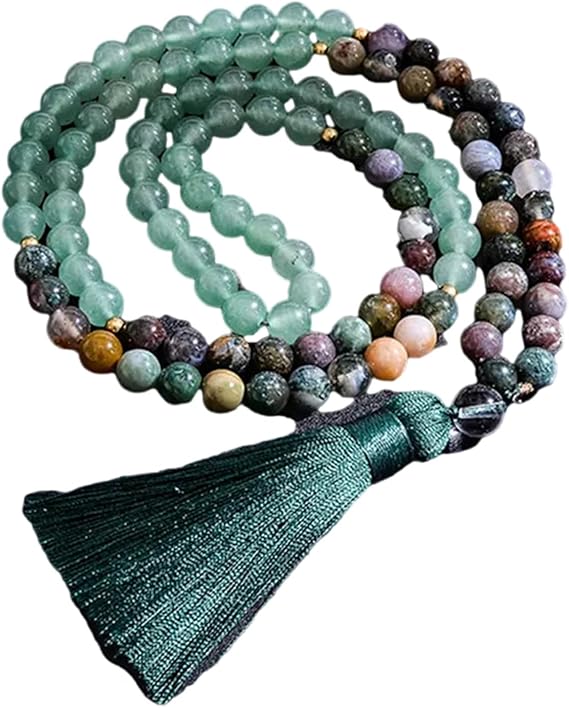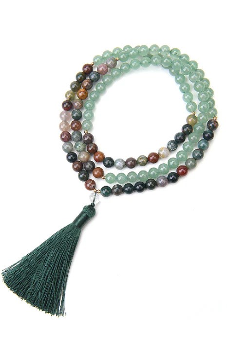 Θιβετιανό Χειροποίητο Μάλα Διαλογισμού που αποτελείται από 108 ημιπολύτιμους λίθους Αχάτη, Αβεντουρίνη, κρύσταλλο χαλαζία και πράσινη φούντα.