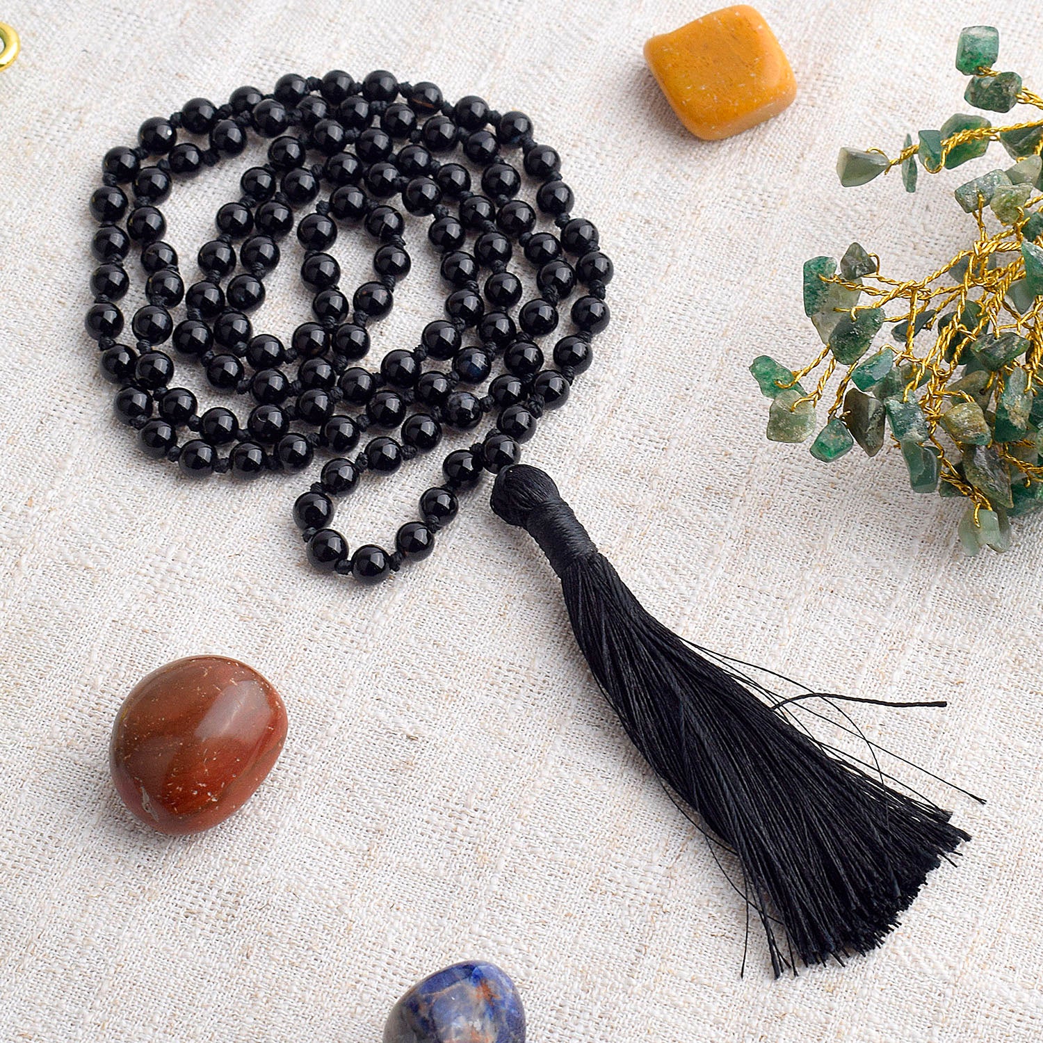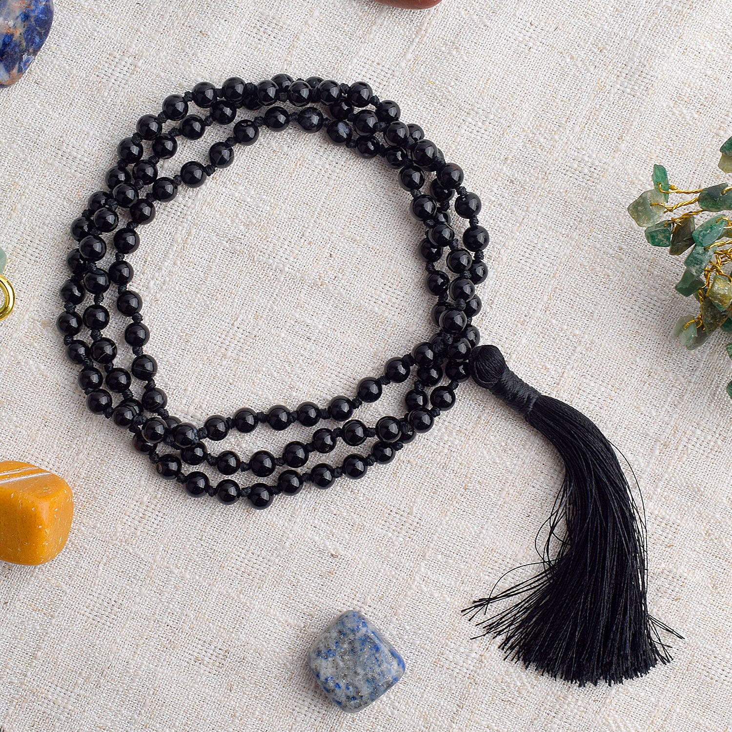 Θιβετιανό Χειροποίητο Mala Διαλογισμού που αποτελείται από 108 ημιπολύτιμους λίθους Μαύρου Αχάτη