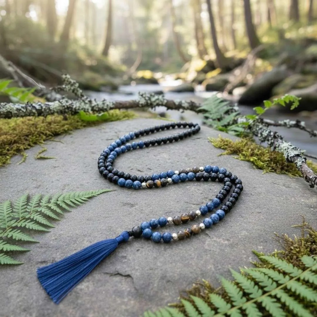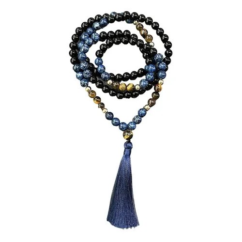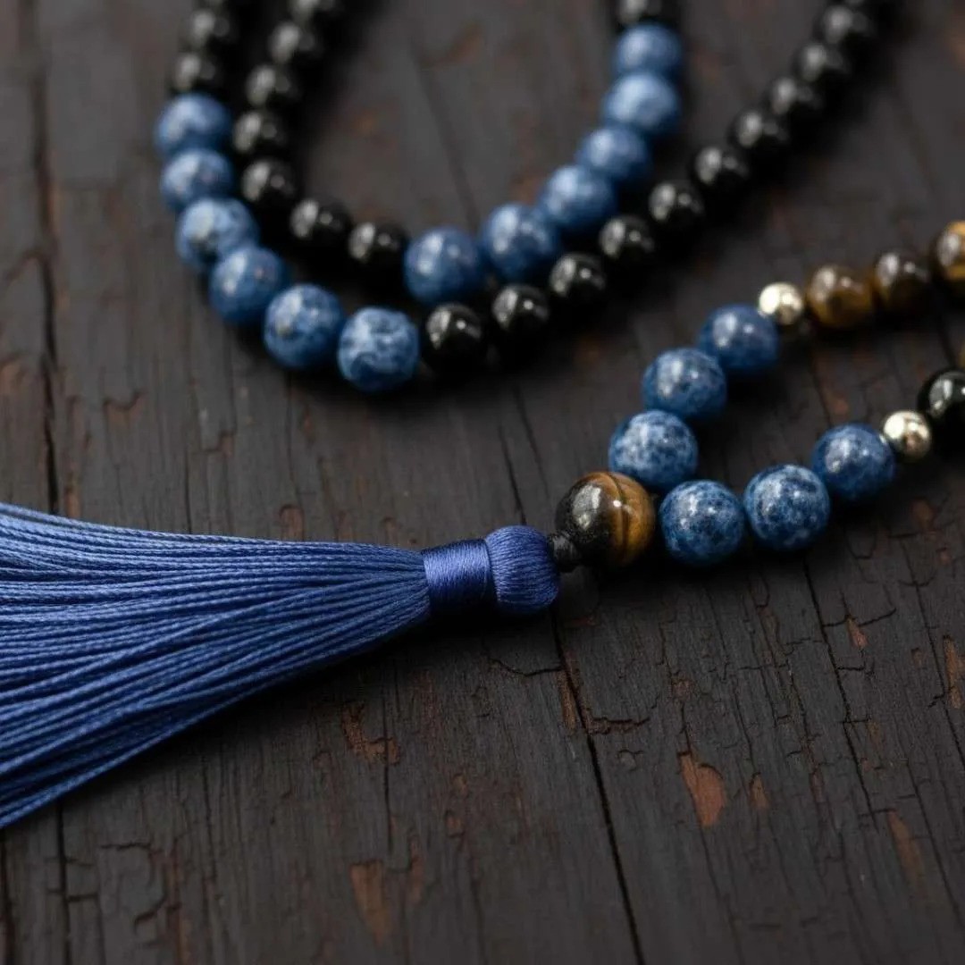 Ο Σοδαλίτης φέρνει ισορροπία και γαλήνη, το μάτι της Τίγρης σας συνδέει με το θάρρος και την αποφασιστικότητα, και ο Όνυχας λειτουργεί ως ενεργειακή ασπίδα που σας προστατεύει από αρνητικές επιρροές. Η βαθιά μπλε φούντα του αντιπροσωπεύει την ηρεμία, την εστίαση και την ενέργεια του στοιχείου του νερού, συνοδεύοντας τις πρακτικές διαλογισμού σας με μια πινελιά οπτικής αρμονίας.