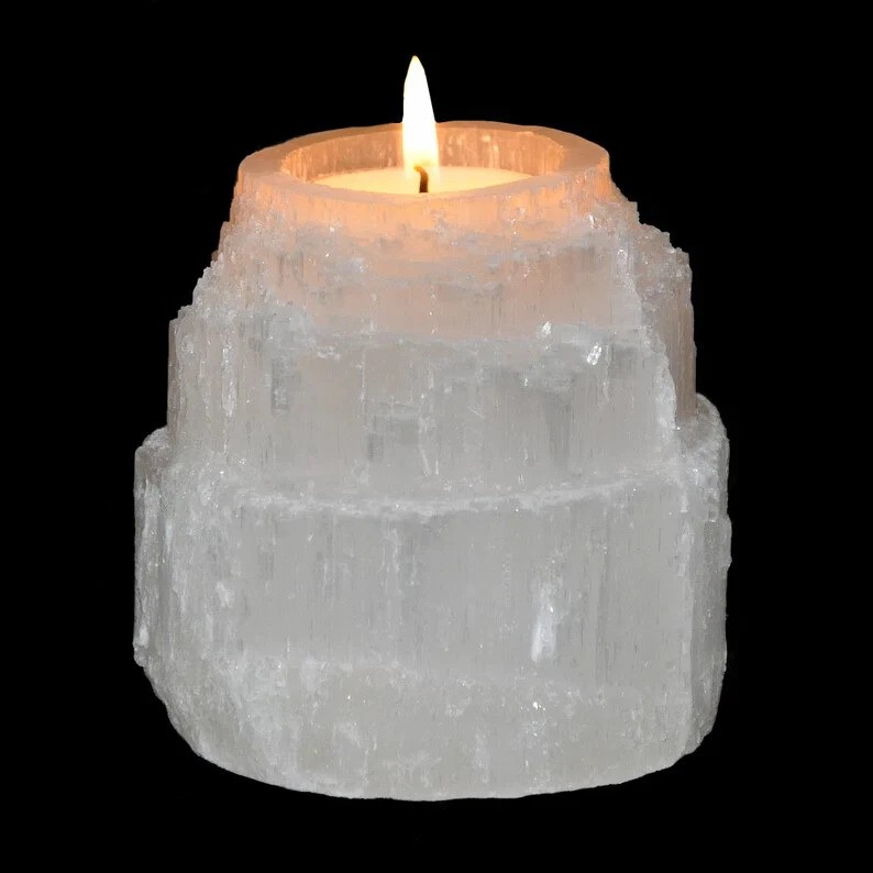 To Κηροπήγιο Σεληνίτη Selenite Iceberg Tealight Holder δίνει μια ζεστή φυσική λάμψη στο χώρο σας. Το φως του κεριού δημιουργεί ένα ατμοσφαιρικό περιβάλλον και δίνει την αίσθηση μιας απαλής νυχτερινής λάμψης.