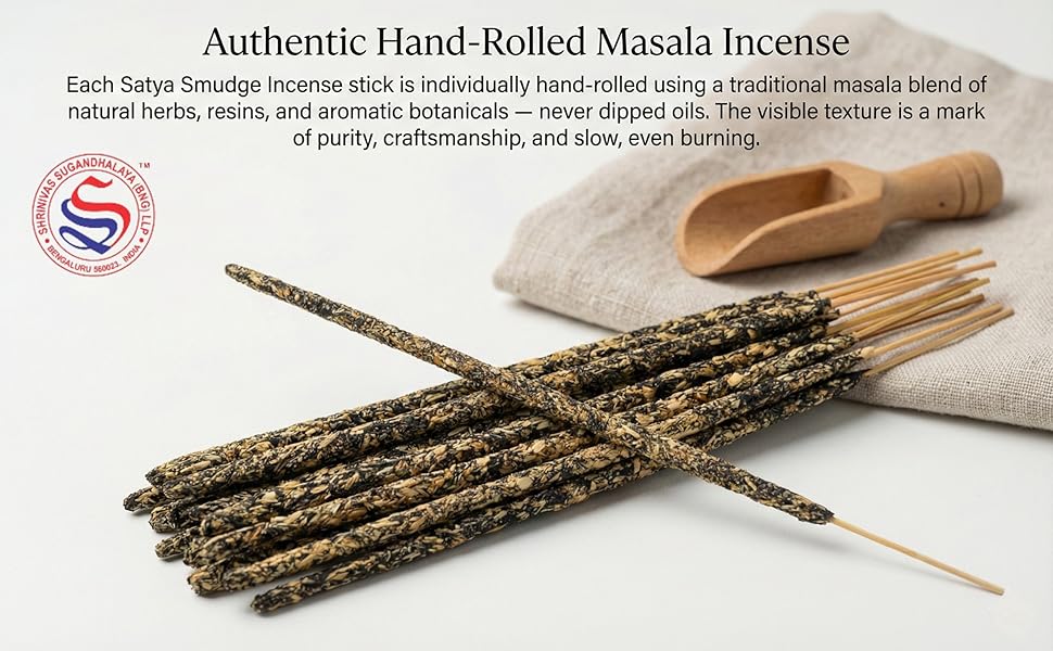 Τα Satya Incense αναμειγνύονται με το χέρι και τυλίγονται στο εργοστάσιο παραγωγής τους στην Ινδία, σύμφωνα με την αρχαία ινδική παράδοση.