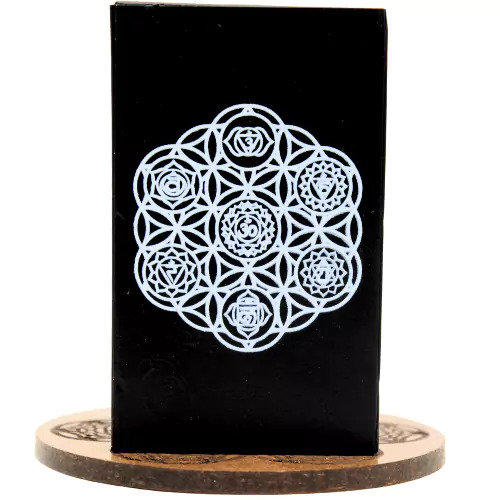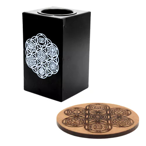 Σετ με Βάση για κερί Ρεσώ και βάση για Αρωματικούς Κώνους με σχέδιο 7 Chakras – Flower of Life