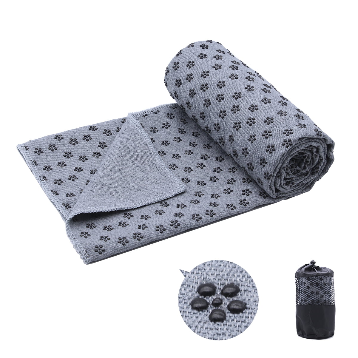 Πετσέτα Γιόγκα και Πιλάτες με Αντιολισθητικές Κουκίδες Yoga Pilates Towel Premium Light Grey 182x63cm