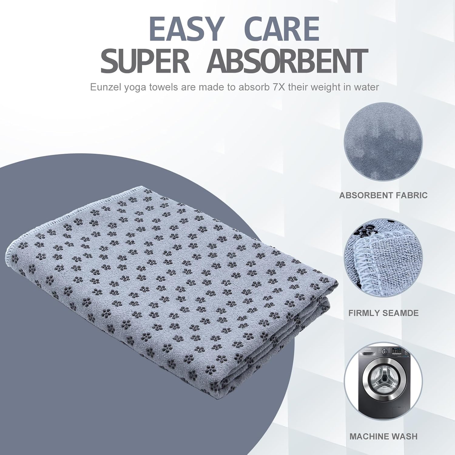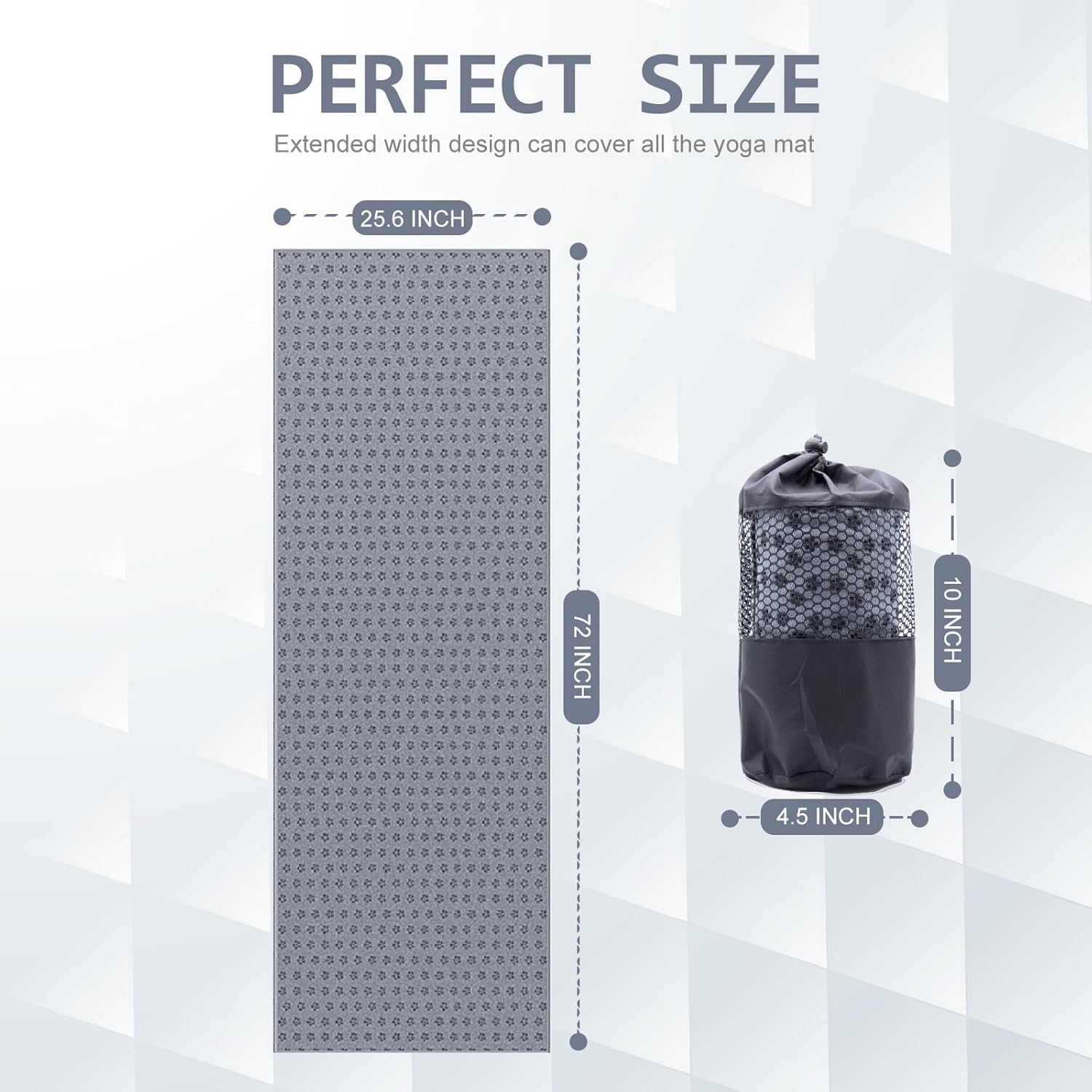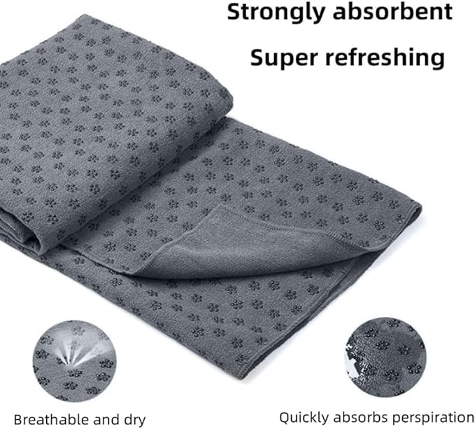 Η πετσέτα γιόγκα είναι ιδιαίτερα απορροφητική, στεγνώνει γρήγορα και αποτελεί το τέλειο αξεσουάρ για κάθε στρώμα γιόγκα. Περιλαμβάνει ειδικές αντιολισθητικές κουκκίδες προκειμένου να βελτιώνει την απόδοσή σας και να μην γλιστράτε κατά τη διάρκεια της πρακτικής σας.