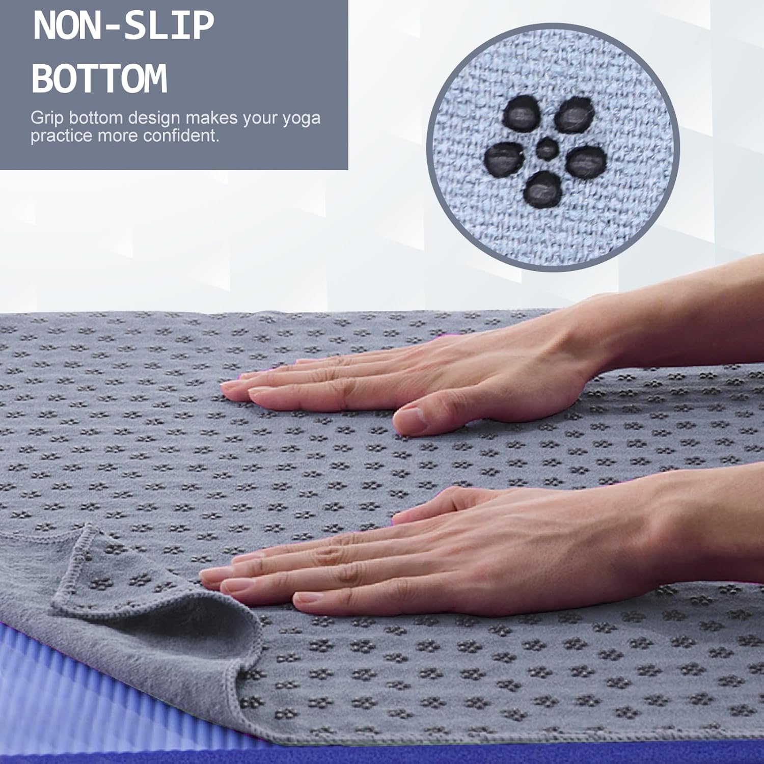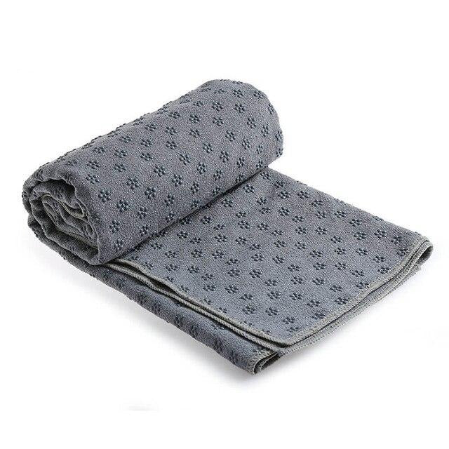 Yoga Towel η οποία απορροφά τον ιδρώτα, χάρις στη μοναδική της σύνθεση από μικροϊνες. Είναι extra αντιολισθητική καθώς οι κουκίδες πρόσφυσης από σιλικόνη την σταθεροποιούν στην επιφάνεια οποιουδήποτε στρώματος γυμναστικής.